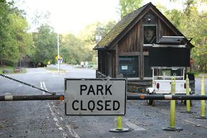 (251004) -- FAIRFAX, 4 octubre, 2025 (Xinhua) -- Imagen del 3 de octubre de 2025 del camino cerrado hacia el...