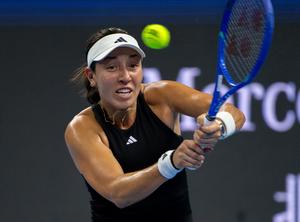 (251003) -- BEIJING, 3 octubre, 2025 (Xinhua) -- Jessica Pegula devuelve la pelota durante el partido de cuartos de final...