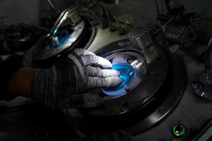 (251003) -- NANJING, 3 octubre, 2025 (Xinhua) -- Imagen del 25 de septiembre de 2025 de un trabajador procesando una...