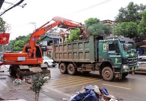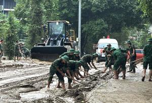 (251003) -- HANOI, 3 octubre de 2025 (Xinhua) -- Personas realizan labores de limpieza, en la provincia de Tuyen Quang,...