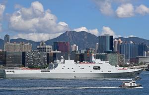 (251003) -- HONG KONG, 3 octubre, 2025 (Xinhua) -- El buque Yimengshan de la Armada del Ejército Popular de Liberación...