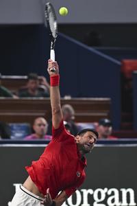 (251003) -- SHANGHAI, 3 octubre, 2025 (Xinhua) -- Novak Djokovic sirve la pelota durante el partido de treintaidosavos de final...