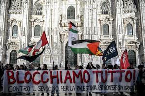 (251003) -- MILAN, 3 octubre, 2025 (Xinhua) -- Imagen del 1 de octubre de 2025 de manifestantes reuniéndose para una...