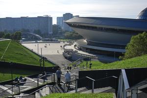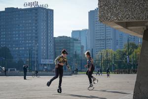(251005) -- KATOWICE, 5 octubre, 2025 (Xinhua) -- Imagen del 4 de octubre de 2025 de personas ejercitándose frente a...