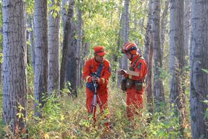 (251002) -- BEIJING, 2 octubre, 2025 (Xinhua) -- Bomberos miden el viento, la humedad y el contenido inflamable en un...