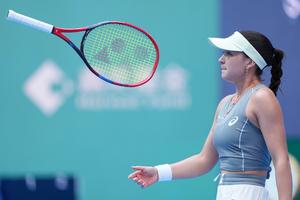 (251002) -- BEIJING, 2 octubre, 2025 (Xinhua) -- Eva Lys reacciona durante el partido de cuartos de final de individuales...