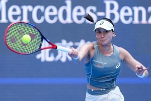 (251002) -- BEIJING, 2 octubre, 2025 (Xinhua) -- Eva Lys devuelve la pelota durante el partido de cuartos de final...