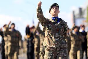 (251002) -- NICOSIA, 2 octubre, 2025 (Xinhua) -- Imagen del 1 de octubre de 2025 de soldados de la Guardia...