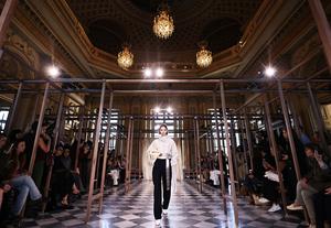 (251002) -- PARIS, 2 octubre, 2025 (Xinhua) -- Imagen del 1 de octubre de 2025 de una modelo presentando una...