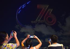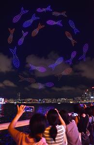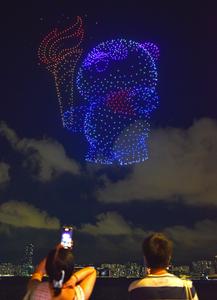 (251002) -- HONG KONG, 2 octubre, 2025 (Xinhua) -- Un espectáculo de luces con drones es presentado en celebración del...