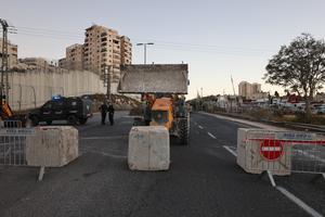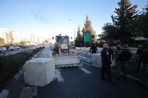 (251001) -- JERUSALEN, 1 octubre, 2025 (Xinhua) -- Policías instalan un bloqueo temporal en carreteras para restringir el tráfico hacia...