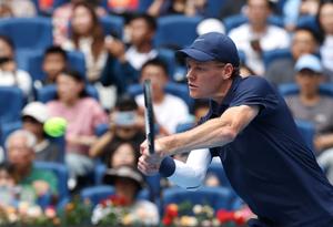 (251001) -- BEIJING, 1 octubre, 2025 (Xinhua) -- Jannik Sinner devuelve la pelota durante el partido final de individuales masculinos...
