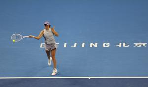 (251001) -- BEIJING, 1 octubre, 2025 (Xinhua) -- Iga Swiatek compite durante el partido octavos de final de individuales femeninos...