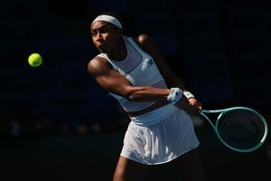 (250930) -- BEIJING, 30 septiembre, 2025 (Xinhua) -- Coco Gauff devuelve la pelota durante el partido de cuarta ronda de...