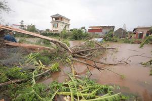 (250930) -- HANOI, 30 septiembre, 2025 (Xinhua) -- Imagen del 29 de septiembre de 2025 de árboles derribados, en la...