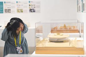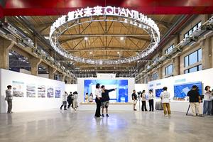 (250930) -- SHANGHAI, 30 septiembre, 2025 (Xinhua) -- Una mujer visita una exposición de la Temporada de Arte del Espacio...