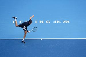 (250930) -- BEIJING, 30 septiembre, 2025 (Xinhua) -- Jannik Sinner compite durante el partido de semifinales de individuales masculinos entre...