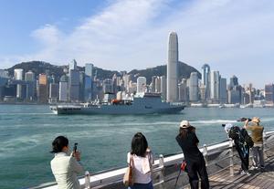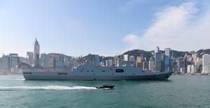 (250930) -- HONG KONG, 30 septiembre, 2025 (Xinhua) -- El buque naval Qi Jiguang de la Armada del Ejército Popular...