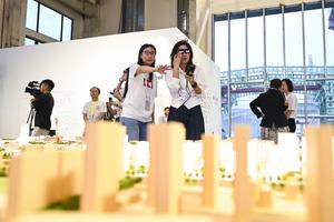 (250930) -- SHANGHAI, 30 septiembre, 2025 (Xinhua) -- Personas visitan una exposición de la Temporada de Arte del Espacio Urbano...
