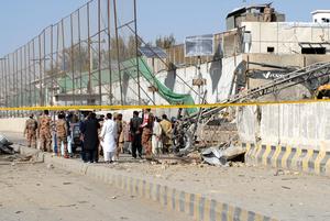 (250930) -- QUETTA, 30 septiembre, 2025 (Xinhua) -- Personas son vistas en el sitio de un atentado suicida, en Quetta,...