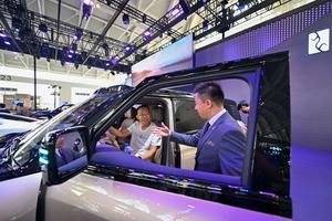 (250930) -- TIANJIN, 30 septiembre, 2025 (Xinhua) -- Personas visitan el estand de iCAR durante el Salón del Automóvil de...