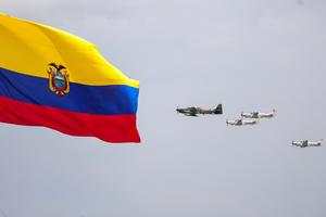 (251027) -- QUITO, 27 octubre, 2025 (Xinhua) -- Imagen proveída por la Presidencia de Ecuador de aviones de la Fuerza...