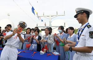 (250930) -- HONG KONG, 30 septiembre, 2025 (Xinhua) -- Estudiantes aprenden a hacer nudos mientras visitan el buque naval Qi...