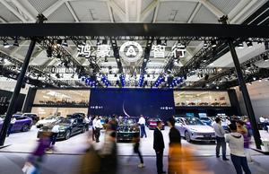 (250930) -- TIANJIN, 30 septiembre, 2025 (Xinhua) -- Personas visitan el estand de HIMA durante el Salón del Automóvil de...