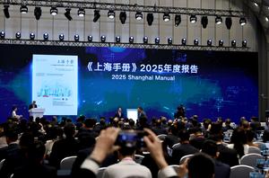 (251026) -- SHANGHAI, 26 octubre, 2025 (Xinhua) -- El Manual de Shanghai 2025 es publicado durante la Conferencia Mundial de...
