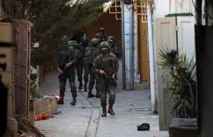 (251026) -- HEBRON, 26 octubre, 2025 (Xinhua) -- Imagen del 25 de octubre de 2025 de miembros de las fuerzas...