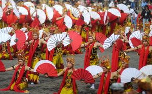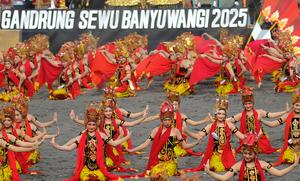 (251026) -- BANYUWANGI, 26 octubre, 2025 (Xinhua) -- Imagen del 25 de octubre de 2025 de bailarinas realizando una presentación...