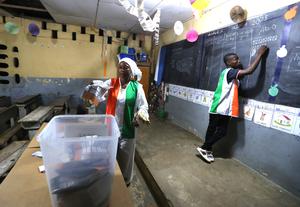 (251026) -- ABIYAN, 26 octubre, 2025 (Xinhua) -- Imagen del 25 de octubre de 2025 de empleados contando boletas en...