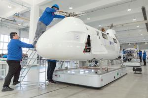 (251030) -- HARBIN, 30 octubre, 2025 (Xinhua) -- Trabajadores ensamblan el helicóptero no tripulado Boying T1400 con rotores en tándem,...