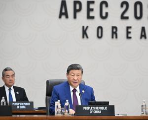 (251101) -- GYEONGJU, 1 noviembre, 2025 (Xinhua) -- El presidente chino, Xi Jinping, asiste a la segunda sesión de la...