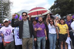 (251101) -- QUITO, 1 noviembre, 2025 (Xinhua) -- Simpatizantes del Gobierno del presidente ecuatoriano Daniel Noboa participan en una marcha...