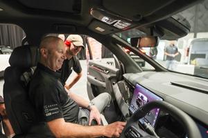 (251101) -- CHRISTCHURCH, 1 noviembre, 2025 (Xinhua) -- Un hombre conoce sobre un vehículo chino BYD en la Take Charge...