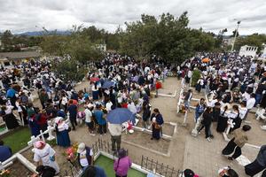 (251102) -- IMBABURA, 2 noviembre, 2025 (Xinhua) -- Personas de distintas comunidades indígenas se reúnen durante el Día de los Difuntos en el cementerio de Cotacachi, en la provincia de Imbabura, en el norte de Ecuador, el 2 de noviembre de 2025. (Xinhua/Ricardo Landeta) (rl) (rtg) (ah)