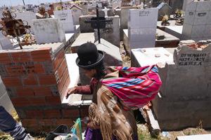 (251102) -- EL ALTO, 2 noviembre, 2025 (Xinhua) -- Una mujer indígena busca la tumba de su familiar para colocar...