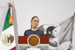 (251103) -- CIUDAD DE MEXICO, 3 noviembre, 2025 (Xinhua) -- La presidenta mexicana, Claudia Sheinbaum, participa durante su conferencia de...