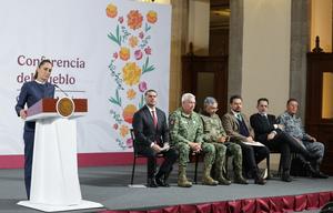 (251103) -- CIUDAD DE MEXICO, 3 noviembre, 2025 (Xinhua) -- La presidenta mexicana, Claudia Sheinbaum (i), habla durante su conferencia...