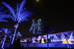 (251102) -- GIZA, 2 noviembre, 2025 (Xinhua) -- Imagen del 1 de noviembre de 2025 de un espectáculo de luces...