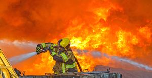 (251103) -- GOBERNACION DE JAHRA, 3 noviembre, 2025 (Xinhua) -- Imagen del 2 de noviembre de 2025 de bomberos intentando...