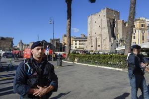 (251103) -- ROMA, 3 noviembre, 2025 (Xinhua) -- Policías y bomberos trabajan en el sitio después de que una sección...