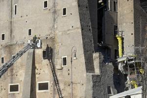 (251103) -- ROMA, 3 noviembre, 2025 (Xinhua) -- Bomberos trabajan en el sitio después de que una sección de la...