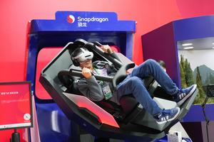(251106) -- SHANGHAI, 6 noviembre, 2025 (Xinhua) -- Un visitante prueba un dispositivo de Realidad Extendida en el área de...