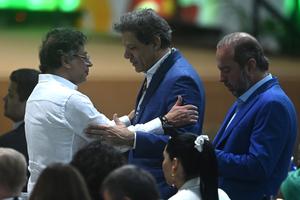 (251106) -- BELEM, 6 noviembre, 2025 (Xinhua) -- El ministro de Hacienda brasileño, Fernando Haddad (c), conversa con el presidente...