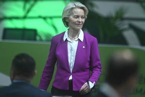 (251106) -- BELEM, 6 noviembre, 2025 (Xinhua) -- La presidenta de la Comisión Europea, Ursula von der Leyen, llega a...