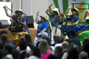 (251106) -- BELEM, 6 noviembre, 2025 (Xinhua) -- Artistas realizan una presentación durante la Cumbre de Líderes que antecede a...