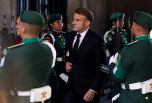 (251107) -- CIUDAD DE MEXICO, 7 noviembre, 2025 (Xinhua) -- El presidente francés, Emmanuel Macron (c), asiste una ceremonia de bienvenida llevada a cabo por la presidenta mexicana, Claudia Sheinbaum, en Palacio Nacional, en la Ciudad de México, capital de México, el 7 de noviembre de 2025. (Xinhua/Daniel Augusto) (oa) (ra) (da)