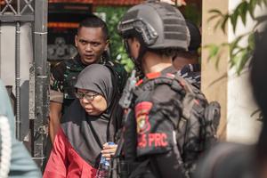 (251107) -- YAKARTA, 7 noviembre, 2025 (Xinhua) -- Una madre de un estudiante se retira tras una explosión ocurrida en...